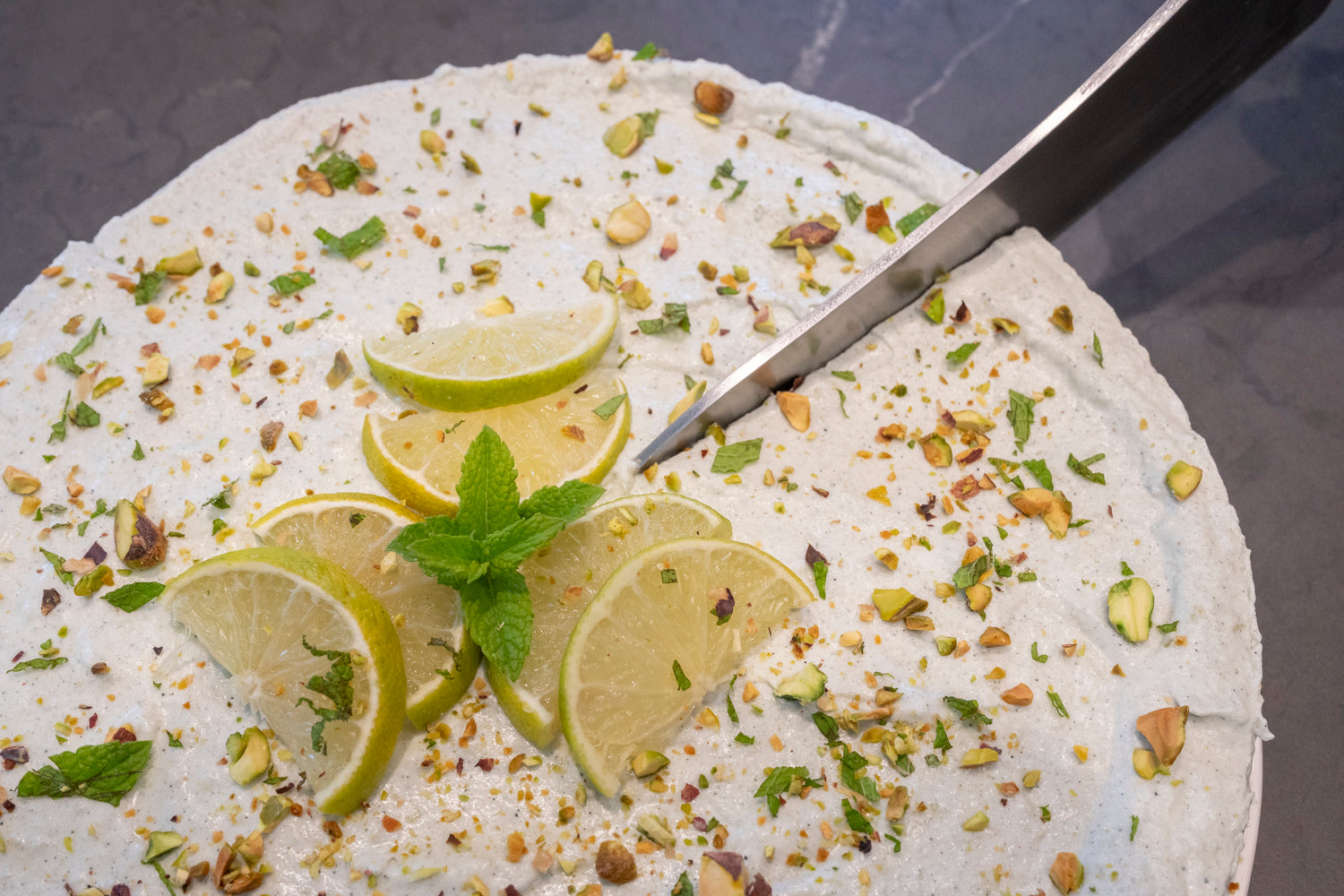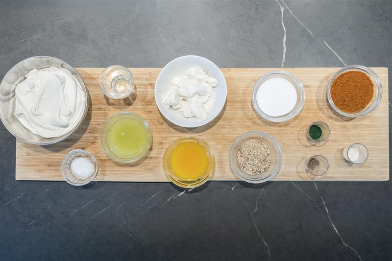 1. Frischkäse, Limettensaft, Limettenschale, Zucker, Vanillezucker und ggf. Spirulinapulver glatt verrühren.